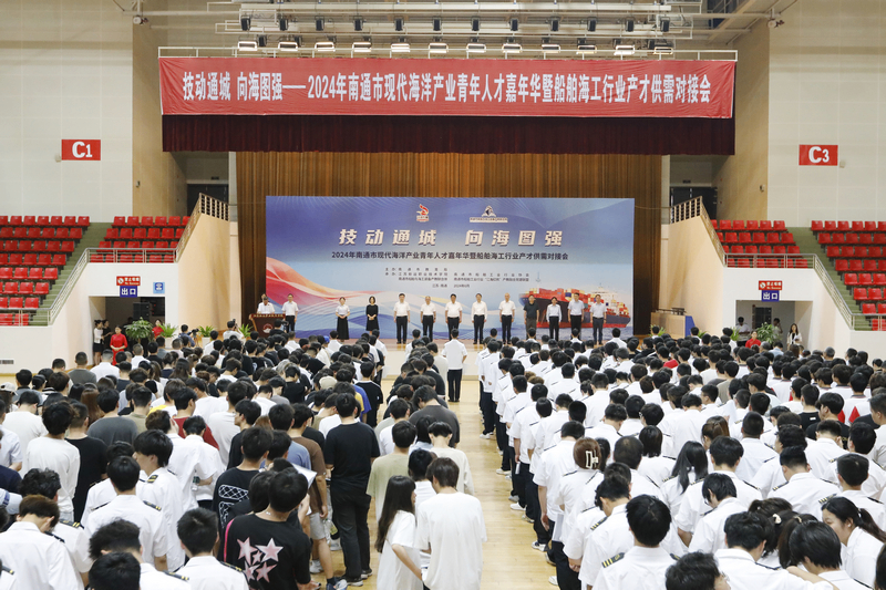 6月14日下午,“技动通城 向海图强”2024年南通市现代海洋产业青年人才嘉年华暨船舶海工行业产才供需对接会在江苏航运职业技术学院举行,此次对接会由南通市教育局主办,江苏航运职业技术学院、南通市船舶与海工装备产教联合体、南通市船舶工业行业协会和南通市船舶工业行业“江海红帆”产教融合党建联盟共同承办。南通市人民政府副市长于立忠,市发展改革委、教育局、工信局、人社局和海门经开区分管领导,我校党委书记薛扬、校长吴丽华、副校长王琪出席大会,在通中高职院校有关师生、联合体成员企业参加了对接会。大会由吴丽华主持。